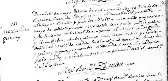 Alexandre Guedry Baptism (v. 5 #242; St. Martin de Tours Catholic Church; St. Martinville, St. Martin Parish, LA)